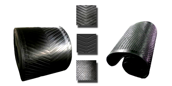 • 當輸送帶的傾斜角度大時(shí),使用普通輸送帶時(shí)物料容易滑落。此時(shí),應選擇花紋輸送帶。